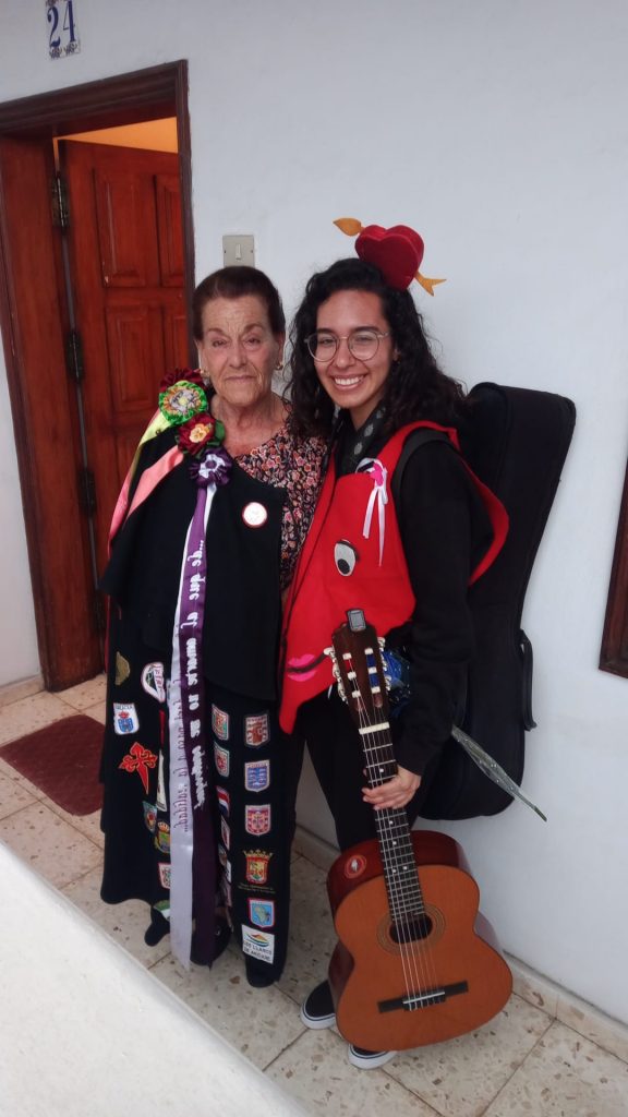 A las 20:00 horas llegó nuestro momento, y pusimos rumbo a su casa. Debemos decir que la ronda era una sorpresa, entonces fue precioso ver su cara de asombro, alegría y emoción mientras cantábamos para ella canciones como La Aurora o Motivo. La emoción estuvo presente desde el primer acorde: fue un momento íntimo, alegre y a la vez entrañable, donde la música se convirtió en un puente de afecto entre generaciones.