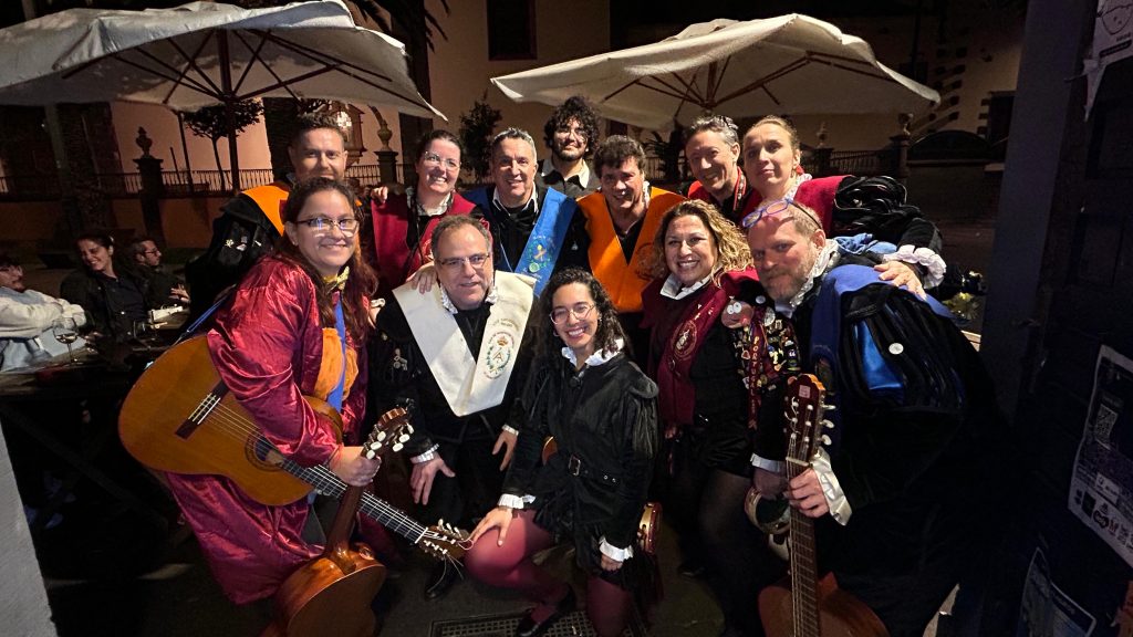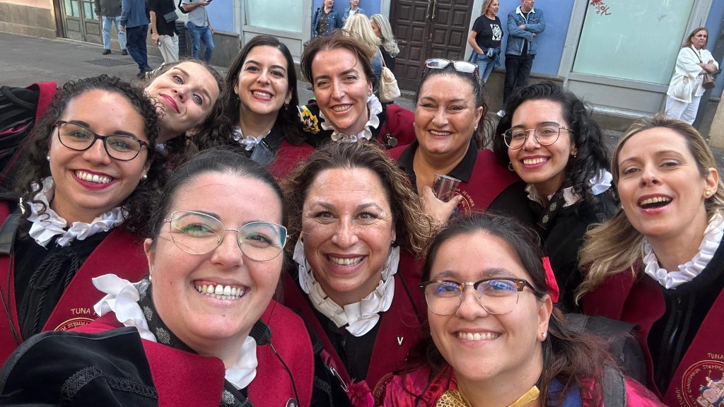 Hacía bastantes años que no se celebraba un encuentro como aquel, y la ciudad de San Cristóbal de La Laguna volvió a llenarse de música, tradición y alegría con la celebración de este esperado encuentro. Durante un día, las calles laguneras se convirtieron en escenario de instrumentos, voces y, especialmente, reencuentros que resonaban entre sus calles históricas. Fue emocionante poder volver a ver a compañeros con los que hacía tanto tiempo que no compartíamos escenario. En este evento, participaron la Tuna de Empresariales de Melilla, la Tuna de Informática de La Laguna, la Tuna de Aparejadores de La Laguna, la Tuna de Medicina de La Laguna, la Tuna de Económicas de La Laguna, y nosotras, por supuesto 😉