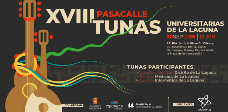 Como cada septiembre, el pasado día 20 pudimos disfrutar, junto con nuestros compañeros de la Tuna de Informática y la Tuna de Medicina, de la XVIII Edición del Pasacalles de Tunas Universitarias de La Laguna, organizado por la Asociación de Antiguos Alumnos y Amigos de la Universidad de La Laguna (AlumniULL).
